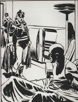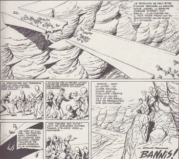 remarques: | 3 épisodes dans ce deuxième album Futuropolis 1) le désert blanc après leur expédition dans la cité mystérieuse, notre équipe explore maintenant la partie froide de Radias: le désert blanc, lutte contre des phoques géants, des ours (noirs) et des loups, Tom le noir ne peut supporter le climat et Neo, le guide radien meurt dans l'action, rien d'original dans cet épisode à part les paraboles de Tsin Lu tel que - "ceux qui se pressent sont des escargots pour ceux qui attendent" - "l'homme trop curieux est parfois puni, mais il découvre souvent des choses intéressantes" 2) Kataraz la maudite voir les commentaires dans l'album Grandes Aventures, aucune différence notable sauf peut'être chez Futuropolis un contraste N&B un peu plus marqué et vers la fin du récit, le graphisme de Poïvet devient plus affiné et plus étoffé >> pl. 116.9 six contre cent mille cet épisode paru dans les années 1948 est le plus long et le meilleur après celui de "vers l'Ourang Mystérieux", le meilleur épisode de toute la série restant bien sûr "le jardin fantastique" 3) cinq cent mille ans avant sur le retour vers la Terre, les pionniers découvrent une nouvelle planète en mutation baptisée Urias où ils y trouvent des hommes des cavernes et des hommes-lacustres confrontés à une nature sauvage (monstres préhistoriques, éruptions de volcans, tremblements de terre et les barbares de cette période préhistorique: les hommes de la mer) >> p. 16 Maud et Tsin-Lu enseignent le chant aux hommes des cavernes, le prof. Wright perdra la vie dans cette aventure, puis les pionniers regagnent leur fusée pour rejoindre la Terre, la joie de revenir sur Terre leur arrachant des larmes un épisode à nouveau peu original et répétitif, Lecureux a bien de la peine à imaginer ses scénarios tandis que le graphisme de Poïvet ne change guère mais reste respectable depuis ce dernier épisode, les pionniers resteront sur Terre où ils explorent les grands fonds sous-marins du Pacifique ou s'amuseront dans le jardin fantastique, plus tard ils iront encore sur la planète des robots (Inaccessible 7) il y aura encore 3 albums Futuropolis sur la série (non collectionnés ici): - tome 3 1984 (cité des ondes, secret de Jacques Ferrand, prof. Marrel a disparu 1950 à 1952) - tome 4 1988 (le jardin fantastique, Caluda 1953 à 1956) - tome 5 1989 (échec aux zions, inaccessible 7 1957 à 1960) et dans Vaillant, la série continuera jusqu'en 1966 date à laquelle Poïvet sera remercié par les éditions Vaillant (on ne sait pas bien pourquoi), mais la série surtout avec l'épisode du jardin fantastique (un petit chef-d'oeuvre) aura marqué son temps n.b. dès l'épisode de Bangra, Robert est renommé Tangha qui a une consonance plus héroïque et plus spatiale, par la suite le tandem Maud/Tangha occuperont peu à peu le devant de la scène constituant ainsi avec Laureline et Valerian l'un des premiers couples de la BD de science fiction on remarquera aussi l'influence très communiste dans les premiers épisodes (les bandits-capitalistes et aussi dans Kataraz la maudite) |