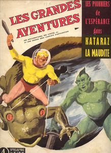 remarques: | premier volet de la collection Grandes Aventures la planète Radias où les pionniers continuent leurs aventures et doivent se battre contre le tyran Torg dans sa cité de Kataraz, après de nombreuses péripéties et avec l'aide des révoltés de Kataraz ainsi que des Tritons sous-marins, Torg sera vaincu malgré ses machines infernales, mais Tom le martiniquais perdra la vie dans cette aventure qui ressemble beaucoup à celle de Flash Gordon sur la planète Mongo >> p. 42 un drôle de code (7 moins 1) pour le bataillon de Gahu >> le scenario est toujours un peu limité mais le graphisme de Poïvet y gagne en qualité n.b. il y eut 6 fascicules sur les pionniers de l'espérance, édités en N&B par Grandes Aventures des éditions Vaillant de 1960 à 1962 soit: - no 4 Kataraz la maudite - no 8 Aquatide, la cité des ondes - no 12 le jardin fantastique - no 13 c'était il y a 500'000 ans + 20° latitude sud - no 16 on a volé les plans du satellite artificiel - no 18 Radias, la planète aux 1000 secrets |