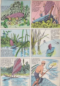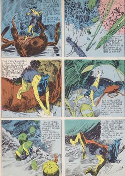 remarques: | probablement le meilleur album de la série Tangha, Tsin-Lu et Rodion à la recherche de Maud, rencontrent le prof. Dickens qui a inventé la machine à réduire les dimensions des êtres vivants et que Maud a utilisé accidentellement, ce faisant elle a été réduite et disparue dans le jardin du manoir l'équipe des trois décident de partir avec le prof. Dickens à la recherche de Maud en utilisant le même procédé commence alors un voyage de taille microbienne dans le jardin du manoir parmi les herbes, les insectes, les gouttes de pluie, l'étang = presque un océan, on s'habille avec des fils d'araignée, >> p. 23/24 le monde des fourmis >> p. 24 la goutte d'eau qui aspire les êtres vivants >> p. 49/50 la navigation sur l'étang et >> p. 34 Maud est retrouvée (assez facilement d'ailleurs), retour au laboratoire et à la dimension normale >> le microcosmos en BD, un superbe album tant pour le scenario que pour le graphisme avec une bonne couleur, un petit chef- d'oeuvre avec en plus une jolie couverture d'album + petit épisode en supplément (et aussi en couleur): le désert blanc (voir aussi album Futuropolis tome 2) |