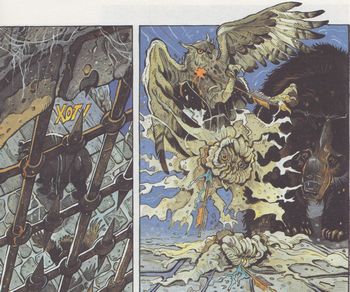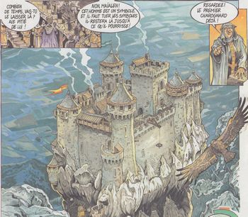 remarques: | suite à une surpopulation de leur planète Xinthia, des plantes algueuses extra-terrestres ont émigré sur la Terre et se retrouvent dans le pays d'Oc au XIIIème siècle où règnent la terreur et le désordre ils se rallient à des serfs du pays pour renverser Serge, le seigneur de Manges (ce seront les mangeurs d'espoir) et mettre à la tête du château son frère jumeau Dominique, frère sosie de Serge des personnages fantasques: - Xneif, le chef des extra-terrestres, - sa fille Xanthia tour à tour louve sous le nom de Foc, puis jeune fille chevalier - Xot le hibou et enfin leur ennemi juré: Jubal le nabot >> p. 4/5 le supplice de l'artiste Vigo et de sa femme >> un scenario un peu compliqué, mais surtout un graphisme original et bien exécuté avec de jolies couleurs et une couverture d'album bien exécutée Information Yves Bordes né en 1953 commence aux éditions Fleurus et dès 1981 devient l'illustrateur attitré du journal Sud-Ouest puis illustre dans Charlie Mensuel les mangeurs d'espoir |