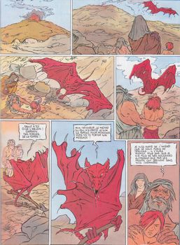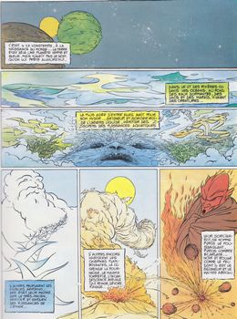 remarques: | origine de la Terre avec les dieux des 4 éléments: Hydor dieu de l'eau, Aer dieu de l'air, Pyros dieu du feu et Gé dieu de la terre, Pyros veut dominer les 3 autres dieux et réussit à les retenir prisonniers grâce à un anneau de feu, mais Gé avant de subir la domination de Pyros parvient à confier ses pouvoirs à sa femme Silice qui à son tour les transmet à son fils Orn en camouflant celui-ci sous la peau d'un chien alors qu'elle donne la peau humaine de son fils à son chien d'où Orn le chien et le chien Orn, Orn redevenant humain à la mort du chien Orn, ouf quelle vie de chien mais le chien Orn réussit à échapper à ses poursuivants et arrive sur une île habitée par la fille Orkaëlle, une demi-déesse issue de l'eau et de la terre >> début original, un scenario simple et compliqué à la fois légèrement érotique et qui reste intéressant avec un bon graphisme et un coloriage bien étudié Information Olivier Taffin (1946-2020), le dessinateur poète, il peint ce qu'il est impossible de décrire |