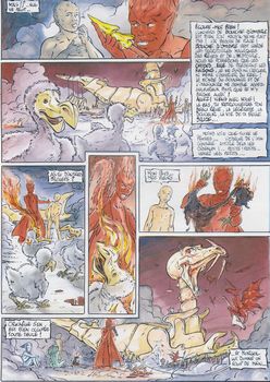 remarques: | récit philosophique et métaphysique reprenant l'origine de la vie (naissance et adolescence des 4 éléments eau, air, feu et terre) en recherchant une explication sur l'interdépendance de ces personnages, notamment d'Orkaëlle, demi-déesse de l'eau et de la terre, de Morgol, protégé de Pyros et de Silice, future femme de Gé >> si le graphisme laisse toute liberté à la personnalité et au style de Taffin, le scenario est tout à fait désordonné et difficile à cerner, apothéose exposant les phantasmes et l'imagination d'un artiste préfaces de Cothias et de Taffin sans conviction critiquant tour à tour les scenaristes et les éditeurs de BD, règlement de compte final par Taffin? en tout cas dernier album, hors-série, de la série |