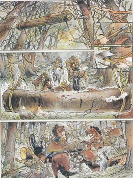 remarques: | aventures dans le pays basque français en 1611, une femme juive est accusée de sorcellerie, arrêtée et mise à la question >> p. 8/9 la cérémonie du sabbat avec le diable Barrabam >> p. 13/14 Elvira de Goitie, la juive, au supplice Elvira réussira à s'évader avec deux autres compagnes et à trouver refuge auprès d'une vraie sorcière qui connait le secret des herbes par la suite, les inquisiteurs prennent le fils d'Elvira en otage pour s'en emparer, mais celle-ci avec ses amis mettra au point un plan subtil pour délivrer son fils puis Elvira, Inès et les 2 compagnes partiront en direction de la Navarre >> série mêlée d'histoire, de religion, persécutions et révolte dans le pays basque, bonne qualité graphique et scenario intéressant ainsi qu'une jolie couverture d'album Information scénariste = Gregorio Harriett, pseudo Muro (1954-), espagnol unique série avec la marque de la sorcière dessinateur = Daniel Perez, pseudo Redondo (1940-) espagnol, bibliographie: - la marque de la sorcière (1985) - Aritz (2011) - fripons (1991) - Yann et Mirka (1986) |
