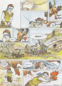 remarques: | Elvira et ses amies ont trouvé refuge dans un village de Navarre où se déroule le carnaval de l'année et Michel, le fils d'Elvira qui a maintenant bien grandi, recevra le titre de roi des coqs (= petit roi du carnaval) mais leurs persécuteurs sont toujours sur leurs traces et elles ne pourront y échapper qu'à la faveur d'une nouvelle affaire criminelle qu'elles réussiront partiellement à résoudre >> le graphisme reste toujours acceptable, mais malgré la nouvelle intrigue criminelle, le scénario de Harriet (Muro) qui signe maintenant de son vrai nom bat de l'aile comme un coq |