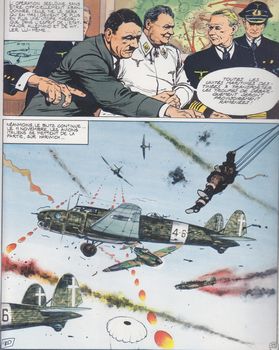 remarques: | un des grands de la deuxième guerre mondiale grâce à sa lucidité et sa tenacité, devenu déjà célèbre comme journaliste durant la guerre des boers en Afrique du Sud et comme lord de l'amirauté durant la guerre 1914-1918, Churchill prend la rélève de Chamberlain le 10.5.1940 et changera le cours de la guerre en résistant à Hitler durant la bataille d'Angleterre, le lion anglais avait vaincu l'aigle allemand avec l'entrée en guerre de l'URSS et des USA un peu plus tard, Churchill savait alors que l'Allemagne allait perdre la guerre et il fut l'un des seuls esprits politiques de son temps à se rendre compte de l'emprise soviétique sur l'Europe après la guerre >>> un très bon album dans l'excellente série des grands capitaines de l'histoire avec le graphisme de Dupuis toujours aussi dynamique |