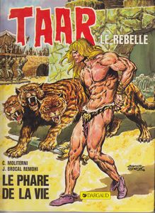 remarques: | Taar à la recherche du phare de la vie pour améliorer la condition de son peuple, parti avec la belle princesse Khanala, il rencontrera sur son chemin la perfide reine Semic et le roi barbare Wraak, mais Taar réussira à ramener le phare de la vie chez son peuple >> p. 36 le combat de Taar contre le tigre à trois têtes >> toujours le même genre d'aventures, un graphisme acceptable bien que quelque peu relâché, mais le texte est vraiment très pauvre, la série continue avec en tout 12 albums de Taar de 1976 à 1988, mais seuls les deux premiers volumes sont collectionnés ici à titre d'exemplaires représentatifs de la série n.b. Moliterni n'est peut'être pas le scénariste idéal pour ce genre d'aventures, il est plutôt spécialisé dans des récits d'histoire, de biographie et de religion (récits bibliques) ainsi que des récits oniriques et semi-comiques (Agar, Orion, Scarlett Dream) |