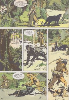 remarques: | la Terre après un cataclysme nucléaire est retournée à une époque préhistorique, Mathai-Dor et sa panthère noire Vega sont à la recherche du feu sacré que sa tribu a perdu par accident, la quête de Mathai-Dor le conduira à une fusée atomique qui est adorée par un peuple comme totem Mathai-Dor ne trouvera toutefois pas de feu dans ce premier récit, la quête continue >> le scénario s'inspire quelque peu de Rosny dans la "guerre du feu", le texte de Fuente est toutefois très faible mais il est compensé par un graphisme de bonne qualité similaire aux aventures d'Haxtur >> voir ce titre |