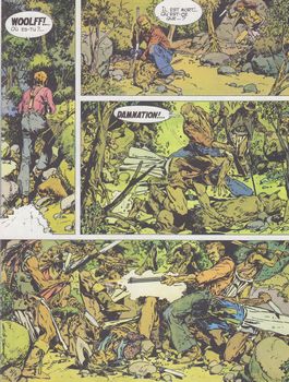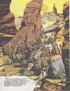 remarques: | Amargo, le lone-man (cowboy solitaire) à la recherche de Sarah, une petite fille enlevée par les apaches de Manolita, doit aussi affronter une bande de rénégats qui veulent s'emparer de Sarah pour en obtenir une bonne rançon aidé par un vieux prospecteur qui deviendra son ami, Amargo parviendra à ses fins après de nombreuses péripéties >> un texte respectable bien que du genre plutôt connu, mais surtout un très bon graphisme de Fuente avec de jolies planches et un superbe jeu de couleur n.b. beaucoup de similitude avec la série Mortimer (>> voir petits formats) |