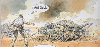 remarques: | le récit commence avec Will, le commandant du vaisseau spatial, qui subit un rêve où il a affaire à des monstres anti-corps, puis il rencontre Shastar et se réveille dans son astronef, quant à Druuna, elle est mêlée à une expérience aphrodisiaque organisée par Lewis (ou Shastar) et elle rencontre son double qui lui révèle la signification de son rêve et l'explication d'un signe mystérieux = Aphrodisia = le nom du double de Druuna. >> p. 14/15 nouvelle séance porno pour Druuna qui semble y prendre beaucoup de plaisir >> p. 22 un mur organique >> p. 32-35 l'expérience aphrodisiaque de Druuna (franchement porno) finalement, tous se retrouveront à nouveau dans le vaisseau spatial, mais Druuna entrera en contact par hologramme avec Shastar qui lui explique qu'il va mourir, que l'astronef sera détruit et que les mondes d'illusion disparaîtront simultanément >>> toujours un graphisme acceptable et quelque peu porno (toutefois un porno bien exécuté), mais le scenario n'est vraiment qu'incompréhension et illusions difficiles à suivre, néanmoins pour Serpieri ce devrait surtout être le graphisme qui compte avec une bonne transmutation des couleurs, fin d'un premier cycle des aventures de Druuna, Serpieri avait effectivement prévu la fin de sa série mais celle -ci reprendra en 2000 n.b. une jolie planche de Druuna à la fin pour conclure |