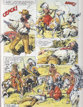 remarques: | 3 épisodes sur les femmes du Far West 1) la femme qui ne touche pas au fusil = une femme Quaker pacifiste, mais qui finalement abattra un assassin avec son fusil 2) l'acte de courage (pour un peau-rouge) la vengeance de Brad Sender sur deux misérables qui ont violé et tué sa compagne indienne "Shona" 3) convoi de femmes des femmes transportées dans un convoi pour des cow-boys qui ont fondé la nouvelle ville de Raton (Texas), 3 femmes brutalisées se révolteront durant le transport >> des histoires plutôt banales, mais avec un bon graphisme typique de Serpieri qui aime à dessiner les femmes aux corps plantureux |