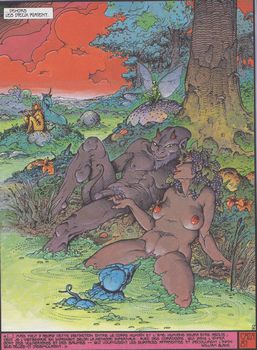 remarques: | deuxième volet de l'âge d'ombre contes du monde des Oms (suite) en 6 petits récits: a) nocturne (l'accouplement avec la déesse et l'Om) b) le rêveur (l'ordinateur homeostatique qui contrôle la cité de M'Om) c) équinoxe (la cité impénétrable de N'Omane que la mer engloutira) d) brouillard (qui absorbe la cité de R'Om) e) cendres (la cité de 'Ompei détruite par le feu où il ne reste que les cendres = excréments fertilisants du feu) f) Ari-l (le petit Om qui devient Ariel le sylphe) >> des récits surréalistes qui ne veulent pas toujours dire grand chose, mais de jolies illustrations (dont celle de la page 35) par Caza avec de superbes couleurs |