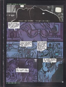 remarques: | 3ème volet du Grand Chien 1983, New York où des agitateurs annoncent l'apocalypse, à Washington l'ordinateur "Big Mater" a déclanché une guerre nucléaire mondiale, New York subit un tsunami et est complètement inondée, des dissidents à New York sont dirigés par Magoo Cushing, le grand chien que l'on croyait mort (voir les albums précédents) et qui est appelé maintenant Fireman, les dissidents lancent maintenant une opération sur le centre bactériologique de New York pour s'emparer du virus "sixth seal" = l'arme absolue, le 6ème sceau a été ouvert et c'est l'Apocalypse >>> la fin de l'album est une orgie de couleurs pour représenter l'apocalypse, le graphisme est vraiment spécial, alors que le scénario n'apporte rien de très nouveau à la série qui se termine définitivement avec cet album n.b. une couverture malgré tout plutôt originale |