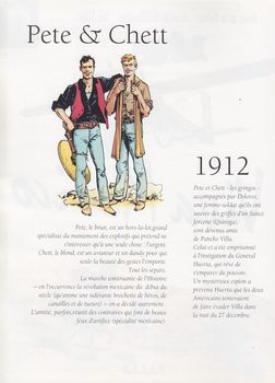 remarques: | 1912 le Mexique est toujours déchiré par la guerre civile et c'est maintenant le général Huerta qui cherche à renverser le président Madero, l'évasion de Pancho Villa réussit, mais Pete et Dolores sont laissés pour compte et doivent se cacher à Mexico après avoir déposé Villa à El Paso, Chett retourne à Mexico rechercher Pete et Dolores, malgré les efforts des deux gringos à Mexico pour prévenir le président du complot organisé par Huerta, le président Madero est capturé et exécuté, Pancho Villa décide alors de retourner à Mexico pour combattre Huerta et à cet effet engage un officier nordiste très réputé: Nez Cassé alias Blueberry >>> un nouvel album dont le développement se fait sans surprise, ni le graphisme ni le scenario ne changent guère, Vidal n'arrivant pas à égaliser Charlier, mais en général l'histoire se tient |