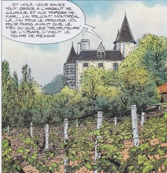 remarques: | nouvelle série de XIII reprise par Jigounov et Sente, participation au graphisme par Vance pour la couverture et les pages 42 à 45 sur le Mayflower (fleur de mai) ce cycle reprend un complot qui aurait son origine derrière la conjuration des XX et qui n'aurait pas été découvert, cette nouvelle conjuration se cache sous l'identité d'une "fondation" ce troisième cycle qui commence avec cet album en 2011 est publié en parallèle avec la série XIII mystery, débuté en 2008, qui a pour but de donner une information complémentaire sur la série XIII et ce 3ème cycle comporte de nombreux nouveaux personnages, les anciens personnages n'y apparaîtront plus que sporadiquement sauf pour Betty Bornawsky qui y joue un rôle assez important, quelques albums sont assez bien imaginés, mais bien sûr, ce ne seront plus ni du Van Hamme ni du Vance retiré à Bar Harbor dans la villa des Smith, XIII est toujours à la recherche de son passé et selon son psy, le dr. Levinson, son subconscient bloque toute tentative pour se souvenir (un genre de prison mentale), un spécialiste le dr. Douglas prévoit une stimulation cérébrale, mais déjà de mystérieux individus surveillent XIII >> p. 9 la tactique sur XIII du dr Douglas par stimulation cérébrale grâce à la stimulation du dr Douglas, XIII se souvient d'un ancien ami lors de son séjour à l'orphelinat après l'assassinat de son père Jonathan: Jim Drake, celui-ci est vite retrouvé, mais il est aussi vite éliminé par les mystérieux tueurs, toutefois avant de mourir il dévoile à XIII que celui-ci avait un "parrain" lors du séjour à l'orphelinat et Jim lui rèvèle encore l'existence des conjurés de la fleur de mai = Mayflower, de l'existence du manuscrit de Duncan et il cite encore le nom de Dorothy (qui est en fait le nom de son chat qui deviendra une pièce importante dans l'énigme posée par l'organisation Mayflower) entretemps, l'opération Sheperd est déclanchée par une mystérieuse organisation (la fondation) dirigée par sa présidente et qui permet de récupérer Shepherd, l'ancien ministre de la défense et membre de la conjuration des XX l'opération déclanchera aussi la destruction de la prison de Printed Desert au ranch Double Bar, Carrington apprend que XIII serait mêlé à cette affaire et XIII est pourchassé maintenant par le FBI et par les tueurs de la fondation dont la jolie Julianne qui lui propose de rejoindre cette mystérieuse organisation (la milice privée du genre blackwater surnommée USAFE) n.b. en se défendant, XIII gratifie la jolie Julianne d'une magnifique cicatrice à travers le visage, ce que celle-ci n'appréciera guère par la suite (du moins elle ne sera pas borgne comme la diabolique Irina) pourchassé de tout côté, XIII se réfugie en France chez ses amis le marquis et Betty Barnowsky au château d'Armand Préseau-Bailly avec son vignoble à New York, la présidente de la mystérieuse organisation charge Julianne de retrouver XIII en se servant du major Jones comme appât et lui raconte une singulière histoire: >> p. 42/43 l'histoire véridique du Mayflower (1607 date de la première colonisation de l'Amérique du Nord sous Jacques Ier = la Virginie = terre vierge avec les Puritains qui professent un christianisme "pur" selon la bible), le Mayflower apporte des colons en 1620 à la colonie qui deviendra Boston, évènement qui est à l'origine du "Thanksgiving day" à New York, la présidente de l'organisation demande de nouveau à son agent Julianne de récupérer XIII et par la même occasion: >> p. 47 la présidente explique à Julianne les origines de XIII, de la famille Mullway, le grand-père de XIII = Henry O'Keefe = le fils de l'irlandaise Mary O'Keefe qui aurait eu une liaison avec le leader moitié écossais et moitié irlandais Duncan dont XIII serait le descendant >> c'est du réchauffé mais du bon réchauffé, un album bien conçu qui plane véritablement dans le mystère et malgré les scènes d'action traditionnelles, le suspense reste intéressant avec un côté historique valable et un graphisme respectable de Sente n.b. pour la première fois, un album de XIII sert de support marketing pour une autre série d'albums, en l'occurence le tome 4 de XIII Mystery "colonel Amos" dont les 5 premières planches font partie de cet album annexes - couverture de l'album - le château de Préseau-Bailly dans le Limousin |