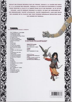remarques: | premier album d'une nouvelle série des mondes de Thorgal. en l'absence de Thorgal et Jolan, la petite Louve joue avec des enfants de son âge et tombe dans une fosse où se trouve prisonnière une louve, Louve deviendra l'amie de Griz, la louve >> p. 17 l'histoire de Griz, chassée de la meute par Raïssa, une louve cruelle qui a pris la place de Griz comme chef de la meute Louve décide d'aider Griz, mais lors du combat, Louve doit prendre la fuite et Raïssa oblige Louve à entrer dans la tanière d'un monstre Louve se retrouve alors dans un monde merveilleux dirigé par le sorcier Assalepstön qui lui apprend que Louve sera la cause de la mort de Thorgal et pour éviter cet évènement, le dieu-sorcier propose à Louve d'extirper de son corps sa part sauvage mais c'est pour mieux tromper Louve, car le sorcier ranime la part sauvage de Louve séparément et en fait un petit monstre affublé d'une peau de loup comme prix pour sa liberté, le dieu lui confie une mission terrible: ramener la main coupée du dieu Tyr qui devrait être aussi le titre du prochain album il y aura donc deux Louve dans cette série: une civilisée et une sauvage, dont les contraires s'opposeront souvent >> p. 45 Louve gentille rencontre le hibou mécanique Avrenim après la série Kriss Valnor, voici la série jeunesse de Louve, un début d'album pas très prometteur mais acceptable le graphisme est acceptable sans être aussi bon que De Vita dans la série Kriss de Valnor et bien sûr sans égaler le graphisme du maître Rosinski n.b. une troisième série est prévue dans les mondes de Thorgal: la jeunesse de Thorgal avec comme premier titre: les 3 soeurs Minkelsonn |