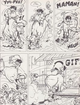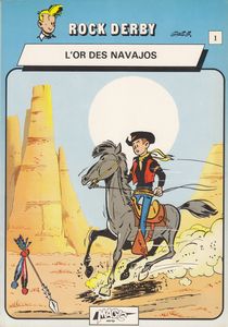remarques: | Rock Derby, Pedro Arara et Baba en route pour Tomahawk city = une ancienne cité du Far West reconstituée avec les habits d'époque et où se déroule un rodeo avec les cérémonies des navajos, mais l'or des navajos est dérobé et ce sera Rock Derby qui réussira à récupérer le trésor des navajos et qui recevra le diplôme de navajo d'honneur >> rare album Magic strip, assez bonne histoire originale, humoristique et bien dessinée |