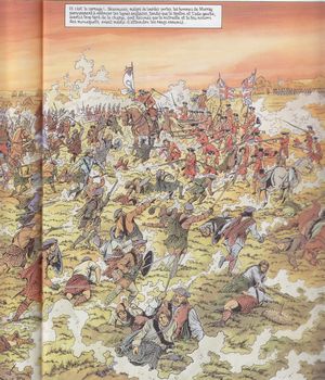 remarques: | la suite de la révolte écossaise avec la défaite des troupes écossaises (les Jacobites catholiques) de Bonnie Prince Charlie contre les troupes protestantes du duc de Cumberland, fils de George II à la fameuse bataille de Culloden Moor où les écossais sont écrasés par l'artillerie et les dragons de Cumberland après la défaite, Eillen et son amoureux Gillander quittent l'Ecosse vers les rivages de la connaissance et de la liberté >>> toujours un bon graphisme et scénario sur fond historique |