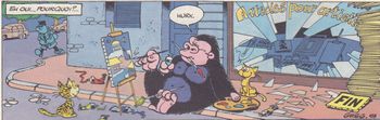 remarques: | 2ème histoire complète avec Achille Talon un gorille s'échappe du cirque Magnum >> p. 5 le gag d'instinct-imitation par Talon ne réussit pas s'en suit une course folle à la recherche du quadrumane, animal amical de Talon et Lefuneste en concurrence avec le maffiosi Folgore Pastaga et son chauffeur Rocco dont la voiture émet des sons inadaptés aux circonstances >> bon graphisme mais cette histoire complète est plutôt une succession de gags divers mais assez intéressants |