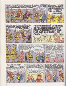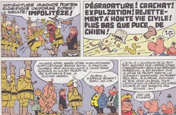 remarques: | Achille Talon déclaré roi de Zortland par intérim, l'héritier du Zortland Absurd Ier, fils de Abzkon XIII, sur le point de mourir, a disparu tandis que Lefuneste part à la recherche de Absurd Ier, Achille Talon met tout en oeuvre pour favoriser le retour du fils de Abzkon XIII sur le trône. s'en suit des péripéties difficiles pour Achille avec le peuple, l'entourage et l'armée qui ont des accents zortlandiens quand ceux-ci parlent français, Achille fait de l'état une dictature fasciste, Chichille se donnant souvent l'air de Mussolini ceci pour favoriser l'accession d'Absurd Ier >> p. 16 la guerre des boutons sous les ordres stridents du major Achtungfeuer >>> une histoire complète assez bien combinée, riche en dialogue et se référant beaucoup au langage de Schiller, d'ailleurs bien déformé |