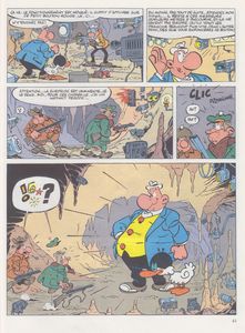 remarques: | Achille et Lefuneste en visite chez l'oncle béotien de Lefuneste où apparaissent de drôles de fantômes. apparition d'un nouveau personnage: Pétard le canard et accessoirement du fantôme géant Eloi. Achille mènera l'enquête et découvrira assez tôt l'agissement des malfaiteurs voulant s'approprier les terres de l'oncle béotien qui contiennent de l'uranium en utilisant la technique de l'holographie pour faire apparaître les visions du géant-fantôme Eloi >>> thème de l'escroquerie avec l'apparition de Pétard, le canard gagné par Talon lors d'un prix de récompense, album assez intéressant mais sans prétention |
