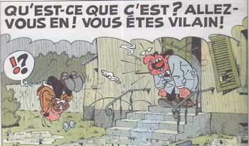 remarques: | variation des aventures de Talon sur le thème du dr. Jekyll et de Mr. Hyde, mais cette fois-ci les rôles sont inversés avec Mr. Bide et dr. Chacal qui tous deux s'occupent au contrôle climatique, mais qui ne sont pas d'accord entre eux à ce sujet. >> p.18 éloge des pleutres tel que Lefuneste >> p.23 la métamorphose de Lefuneste en jeune homme >> un album qui fait ni chaud ni froid, un remplissage de texte sans intérêt, avec en plus un graphisme relaché et le canard talonesque est toujours là |