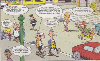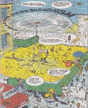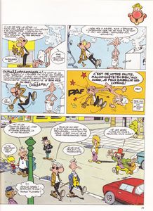 remarques: | retour aux récits à 2 planches avec quelques bons gags dont: la clarinette à ultra-sons, la surcharge aérienne, le marketing agressif, réapparition du rédacteur-en-chef Goscinny, les sondages d'opinion, l'arroseur arrosé, le gâteau d'anniversaire, etc >> p. 39 la cure d'amaigrissement où Talon se transforme en Filochard et Lefuneste en Croquignol, mais des dames, il n'y a pratiquement point (sauf p. 30/31) >> un album tout à fait acceptable, décidément Greg est certainement plus à l'aise dans les courts petits récits que dans les longues grandes histoires complètes |