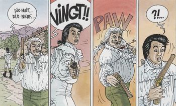 remarques: | Grenoble 1792, l'Assemblée Nationale vient de déclarer la guerre à l'Autriche, mais un complot monarchiste se prépare à Grenoble, mené depuis les émigrés de Coblence pour faire intervenir la Savoie contre la France >>> p. 6 et 15 le signe de reconnaissance des comploteurs: des montres avec un cadran de 13 aiguilles, cette fois c'est César seul qui mène l'enquête et qui découvrira le pot aux roses à travers des aventures amoureuses >> un album sans grand intérêt avec un complot des plus banal et une histoire à l'eau de rose, même les dialogues d'époque ne sont plus aussi savoureux, c'est vraiment la fin de la série qui ne sera plus continuée |