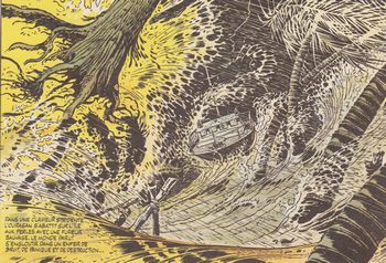 remarques: | retrouvailles avec El Lobo qui a gagné au jeu une pêcherie de perles dans le Pacifique, mais celle-ci est gardée par une murène géante avec laquelle il faudra compter, en plus nos amis doivent faire façe à une population hostile menée par un sorcier désireux de garder son autorité et à un formidable ouragan qui dévastera l'île aux perles mais grâce à l'éléphant sud-américain (El Lobo), tout redeviendra en ordre >> un bon album avec un scénario solide et un très bon graphisme, surtout pour les couleurs ainsi qu'une couverture d'album bien exécutée |
