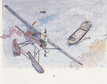 remarques: | en attente de la livraison du cormoran II, Djinn est envoyé aux études et le tandem Bernard/Barney accepte une mission dans le Grand Nord, en l'occurence en Alaska où il faut récupérer la Mary-Novembre, un cargo sensé être en panne avec son équipage disparu une fois le cargo retrouvé, il faudra l'amener à travers les glaçes à Port-Everwhite = le port des fous, car coupé de la civilisation 8 mois sur 12, mais auparavant Bernard et Barney devront éliminer une bande de ruffiants qui veulent s'emparer d'une cargaison de cocaîne dissimulée dans le cargo >>> un album à sensation avec un scénario digne d'intérêt et toujours un bon graphisme pour ce dernier album produit par le tandem Hermann+Greg n.b. c'est aussi le dernier album traditionel quant à la page de garde (le cormoran en bleu) et le 4ème plat original |
