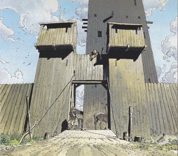 remarques: | la bande de Germain est maintenant bien installée dans le castel du seigneur Yvon de Portel qui est sous l'emprise de Guillaumette, la garçette, qui fait partie de la bande et qui essaie de se faire épouser par Yvon pour recevoir le château et ses biens alors que l'épouse d'Yvon et Raymond, son fils, ont été jetés dans un cachot Aymar et Olivier font halte au château Portel et sont promptement jetés eux aussi dans un cachot, mais Germain reconnaissant son sauveur de jadis facilite l'évasion de Aymar et Olivier qui reviennent au château avec les forces de la loi, tous les brigands y compris Guillaumette seront exterminés, seuls Alda et Germain réussiront à s'échapper et à repartir sur leur propre chemin >> p. 45 la peine du vieux seigneur Yvon de Portel qui aimait malgré tout sa Guillaumette >> fin temporaire des aventures de Germain, le scénario n'est pas particulièrement recherché, mais le graphisme reste excellent n.b. le titre de l'album aurait dû s'intituler Guillaumette et non Alda qui n'est que peu présente dans le récit |