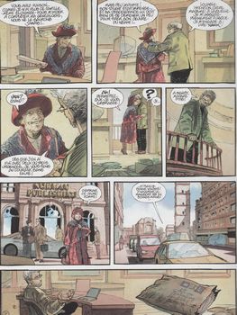 remarques: | superbe série ésotérique en 11 volumes (10 volumes dans la 1ère série + 1 volume no 11 compilatif et explicatif sur la série) avec le Coran comme sujet, scénario Giroud avec de nombreux dessinateurs (un dessinateur différent par volume), chaque volume traitant d'une passion dominative: l'angoisse ou le désir de l'homme en prenant référence aux commandements du Coran - volume 1 le manuscrit, travail et génie "tu ne tueras point", sujet: un écrivain devient célèbre en publiant un livre: "la marque du prophète" dont le texte est copié sur des manuscrits datant de 1821 reçus par hasard d'une vieille femme (mais il y a aussi des meurtres, du chantage et pour l'écrivain, ce sera "tel est pris qui croyait prendre!") dessinateur: BEHE >>>> n.b. pour une meilleure compréhension de la série, il est préférable de commencer la lecture avec le volume 10 puis de continuer avec le no 9, 8, 7 jusqu'au no 1, voir aussi le tome X pour des informations complémentaires LE DECALOGUE = nom donné aux 10 commandements = 10 paroles en grec, il y aurait 3 décalogues: juif, chrétien et musulman LA VULGATE = traduction de la bible en latin n.b. cette série est une des meilleurs séries de BD (à mettre dans le Top du Top) Glasgow, une jeune femme est assassinée par le tueur de la Clyde qui laisse toujours une poupée cassée auprès de ses victimes, peu après, une vieille femme, Melinda Pitts, soumet un manuscrit "Nahik" (plutôt le brouillon du manuscrit) daté de 1814 à un directeur éditorial, Simon Broemecke, pour le lire, la vieille dame meurt dans un accident, elle n'a pas de parents directs quant à Broemecke, selon son ex-petite amie, c'est plutôt un pauvre type qui a raté sa femme et sa profession d'écrivain tout change quant Broemecke qui a lu le manuscrit découvre que c'est un chef-d'oeuvre et décide de l'éditer pour son propre compte, le roman édité par Broemecke est intitulé "la marque du prophète" et c'est la traduction exacte de Nahik >> p. 19 Broemecke et son chat Nessie qui jouera un rôle assez important dans le récit entretemps la richesse sourit à Broemecke qui récupère sa petite amie, fière de lui grâce à son nouveau roman, alors que le tueur de la Clyde fait une nouvelle victime mais alors que tout se déroule bien pour Broemecke, celui-ci reçoit par la poste une copie du manuscrit et un mot lui demandant de venir à un rendez-vous, il s'agit d'une lointaine parent de Melinda Pitts qui a aussi hérité d'une copie du manuscrit et qui voudrait aussi profiter de la manne céleste dégagée par l'édition du roman n.b. il existe deux exemplaires du manuscrit: un brouillon et une version au propre + les aquarelles (le livre Nahik a été remis à Philippe Fleury et est maintenant détruit alors que le manuscrit, son brouillon et les aquarelles avaient été remis à Hélène, soeur de Philippe et à ses descendants) seulement, cette cousine de Melinda, Iris Moorland, ne veut pas d'argent, elle veut devenir la compagne de Simon et partager sa gloire et aimerait garder sa jeunesse (elle a 45 ans) en accompagnant le jeune auteur mais par la suite elle devient tyrannique et vite insupportable pour Simon celui-ci mûrit alors un plan: assassiner Iris Moorland en faisant passer le meurtre sur le compte du tueur de la Clyde, ce qu'il fait le lundi à 21.00 heures, malheureusement le tueur présumé est arrêté lundi matin ce que Simon ne sait pas lorsqu'il tue Iris; l'apprenant après coup, il se sent perdu, son alibi ne jouant plus, il se réfugie dans sa propriété des Highlands, il y passe ses derniers instants à écrire un livre sur l'histoire d'un écrivain raté qui s'approprie indûment le chef-d'oeuvre d'un autre auteur, il y découvre maintenant son vrai talent avant de se suicider ironie du sort, le tueur arrêté n'est pas le véritable tueur de la Clyde, c'est un mythomane qui se fait passer pour le vrai tueur et le meurtre effectué par Simon devient tout à coup tout à fait plausible, Simon aura du moins laissé cette fois à la postérité un excellent roman de son cru "la malédiction du manuscrit" >> un thriller très intéressant et original bien pondu par Giroud (crime, passion amoureuse et quête du succès), scénario de bonne qualité et graphisme acceptable une fin de série très honorable pour ce premier/dernier volume mais la série reprendra 5 ans plus tard à partir de ce volume dans un deuxième cycle baptisé le légataire (2006), entretemps à voir aussi l'excellent volume complémentaire sur la série (no XI 2003) |