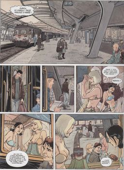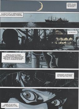 remarques: | volume 2, la FATWA = passion de la foi "tu resteras à l'écoute de Dieu", sujet: intrusion sur l'idéologie fondamentaliste des leaders intégristes islamiques (un sujet difficile et dangereux!) dessinateur: De Vita la Fatwa = décret religieux pris par les autorités religieuses musulmanes, bismi allah, ar-rahmân, ar-rahim = gloire à Allah, le sublime, le miséricordieux le scenario tourne toujours autour du livre maudit NAHIK (seul exemplaire existant au monde avec les superbes aquarelles de Desnouettes), dans cet album le NAHIK sera perdu dans la Méditerranée lorsque Merwan tentera d'échapper à ses frères intégristes qu'il ne reconnait plus dans les principes du Coran découverts lors de la lecture du livre NAHIK Paris 2000, spectacle de comédie "l'opération trans-danse" devant se dérouler dans les gares que traverse l'Orient Express sur les étapes de son parcours: Paris, Bâle, Zurich, Innsbruck, Verone, Venise, Zagreb, Istamboul >> p. 7 dispute entre l'intégriste islamiste Merwan Khadder et sa petite amie l'artiste Aline Merwan ayant remarqué un curieux personnage qui monte dans l'Orient Express le suit et se rend compte qu'il s'agit de Halid Riza, l'écrivain qui a rédigé le livre "la dernière sourate" sur la base du livre Nahik et sur lequel les fanatiques islamistes iraniens ont jeté un Fatwa de 2 mio de dollars pour le tuer mais Merwan hésite à mettre son acte à exécution et se laisse raconter par Riza le contenu du Nahik, les explications sur les 10 commandements laissés par le prophète sur une omoplate de chameau cette fois (au lieu de dromadaire!) et sur la malédiction planant sur le livre (malédiction dûe peut'être au diable!) >> p. 20 tu ouvres mais tu la fermes! >> p. 27 le message de paix que contient le Nahik dérange le diable d'où la malédiction qui entoure le livre >> p. 30/31 deux belles planches de De Vita finalement, Merwan assassine Riza sans grande conviction dans l'Orient Express et réussira en emportant le livre Nahik à échapper à la police suisse, revenu à Paris et afin de ne pas mettre la cellule islamique de Paris en danger, on lui enjoint d'embarquer sur un bateau en direction d'Alger avec la militante Lafita, une ancienne amie de Merwan mais sur le bateau, des divergences basées sur le Nahik opposent Merwan aux dirigeants islamistes qui ne veulent pas faire connaître au monde islamique le contenu du Nahik avec ses commandements contraires à la politique de l'Islam grâce à l'aide passive de Lafita, Merwan réussira à s'échapper en plongeant dans la mer et peut'être à regagner la côte mais le Nahik tombé aussi à l'eau devrait être perdu dans cette épisode maritime >> un graphisme très expressif et de haute qualité par De Vita avec un scénario à nouveau très captivant prenant position avec précaution sur le problème islamiste et basé sur le livre Nahik, il est aussi formulé quelque critique sur l'idéologie fondamentaliste des leaders intégristes islamistes (peut'être aussi avec quelque risque pour Giroud!) mais le caractère maléfique du Nahik aura peut-être eu cette fois une action bénéfique en ouvrant les yeux de Merwan et en influençant le comportement de Latifa qui sauve la vie de Merwan c'est aussi peut'être la fin du livre Nahik, restent le manuscrit et les aquarelles conservés par les descendants de la soeur de Philippe Fleury dont l'histoire n'a pas encore été révélée et dans ce tome, on rejoint quelque peu l es mêmes révélations mentonnées dans le tome X n.b. petite erreur: il n'y a pas de tunnel juste avant l'arrivée à la gare de Zurich et d'ailleurs la géographie n'est pas le fort de Giroud dans cet album |