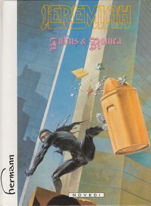 remarques: | établissement d'un nouvel ordre américain (l'Amérique Renaissante) dans une cité d'ordre et de propreté où deux pouilleux refusent de se soumettre: Romea fille du président et Julius le joueur de guitare ainsi qu'un certain "ange noir" qui sème la pagaille dans la cité (on découvrira que c'est le chef de la police) Kurdy et Jeremiah à la recherche de travail auront bien de la peine à quitter cette cité après avoir essuyé une scène de toreador >> p. 9 la mule Esra qui fait parler d'elle >> p. 17 la tentation de Jeremiah >> p. 42/43 scène de corrida pour Jeremiah >> rien de particulier dans cet album sauf le graphisme dont le coloriage est repris par Hermann quant à celui-ci, il s'amuse aussi à développer une foule de personnages secondaires, par exemple on retrouve dans cet album le dénommé Stonebridge (>> voir cobaye pour l'éternité) |