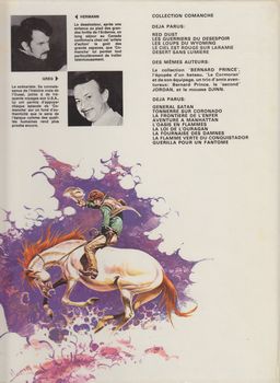 remarques: | première réédition (1976), dernier titre au 4ème plat "désert sans lumière" les débuts de Red Dust qui arrive à Greenstone Falls (Wyoming) après avoir éliminé le tueur Wally Hondo à la solde de Cathrell, Red est pris pour Hondo et rencontre une vieille connaissance: Kentucky Kid puis Red Dust se fait engager au ranch Triple Six par la belle Comanche et le vieux Ten Gallons, par la suite Red Dust aura affaire au vétérinaire galeux Doc Wetchin et le shérif véreux Donovan, mais avec l'aide de deux nouveaux compagnons: Tenderfoot Clem et Toby le Noir, Red Dust démasquera Kilpatrick, le vrai criminel qui tirait les ficelles par derrière >> p. 37/38 le duel à front renversé où Red est sévèrement blessé >>> un bon début de western classique avec le graphisme particulier de Hermann Annexes - couverture et 4ème plat de l'album - réédition 2016 - extrait de l'album Information les diverses positions pour porter son colt dans les holsters (page 10) a) la crosse en avant comme Red Dust b) la crosse en arrière comme Kentucky Kid une question de rapidité, avec la crosse en avant, on dégaine le gauche avec la main droite et le droit avec la main gauche (?) (cross draw carry and side draw carry) |