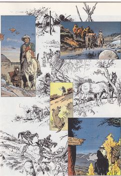 remarques: | Red Dust quitte ses fonctions de sheriff et de fermier pour tenter l'aventure dans une région non encore civilisée: le Montana, l'histoire des mines de cuivre et de la loi Apex, rencontre avec les vigilants et avec le fermier Duncan et sa fille Pat >> p. 16 une case bucolique, le rouquin réveillé par un rouge-gorge Red Dust se rend compte que Duncan n'est autre que Jed Dexter alias doigt du diable, un célèbre pistolero qui a toutefois promis à sa fille de ne plus toucher une arme, mais quand Dan Wallace, le chef des vigilants vient le provoquer en duel, Dexter va reprendre ses armes s'en suit une bagarre où finalement Dan Wallace et ses acolytes seront abattus, Duncan, sa fille Pat et Red Dust avec deux nouveaux arrivés: Bob Fletcher et Baldy resteront fermiers dans la tranquillité retrouvé >> p. 19 jolie planche sur les vachers du Montana >> p. 30 l'exercice des pistoleros mexicains: la construction de châteaux de cartes >> p.31 l'homme qu'on n'avait pas le temps de voir tirer >> un super album tant pour le scénario que pour le graphisme avec des couleurs magnifiques et une superbe couverture d'album |