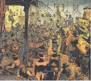 remarques: | début des western-polar petite leçon de philosophie par Toby le noir: il faut aussi avoir de la chance dans la vie >> p. 6 magnifique vue d'ensemble d'un saloon dans l'ouest des vols meurtriers dissimulés avec des incendies sont mis sur le compte de deux agents d'assurance qui veulent faire des affaires et où le diable hurlait de joie toutefois cette fois grâce à la perspicacité du cheyenne Tache de Lune, les vrais criminels seront démasqués et abattus dont doc Wetchin, une vieille connaissance dont Tache de Lune ramenera le scalp et >> p. 48 les agents d'assurance se montreront très compréhensifs concernant les incendies en établissant des contrats d'assurance pré-datés (scenario limite, gare aux compagnies d'assurance) >>> un bon album tant pour le scenario (assez bien imaginé) que pour le graphisme dont le coloriage est toujours effectué par Fraymond avec une jolie couverture d'album signé par Hermann |