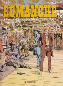 remarques: | le nouveau service de poste de Greenstone Falls apporte une lettre pour Red Dust aux bons soins de Verna Fremont alias Comanche, de la part d'un frère de Red Dust = Cameron Dust qui l'invite à venir le voir à Dodge City. >> p. 7 une deuxième explication sur les origines de Red Dust mais Cameron, frère de Dust, n'est pas précisement un enfant de coeur, en fait c'est un chef de bande et la diligence qui conduit Red est attaqué par des bandits qui reconnaissant Red comme le frère de Cameron le traite avec égard ce qui rend Dust suspect aux autres passagers >> p. 18 les retrouvailles des deux frères >> p. 21 le dollar à trois façes = un faux dollar Cameron projette toutefois un grand coup et veut en rejeter la responsabilité sur son frère, mais son plan sera déjoué et Dust mettra personnellement fin aux agissements de son frère en le faisant arrêter (il n'ira quand même pas jusqu'à l'abattre) >> p. 48 le retour de Red chez Comanche: mon frère, quel frère? >>> une idée de base assez originale, mais le développement n'est pas terrible et le texte peu recherché alors que le graphisme reste respectable n.b. le titre sur la couverture n'est plus Rouge+Greg mais Greg+Rouge et si le 4ème plat n'a pas changé, une nouvelle page de garde prend forme |