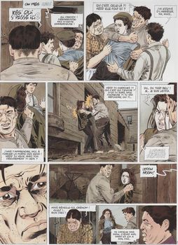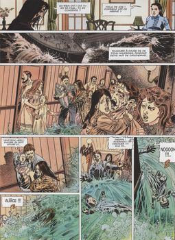 remarques: | volume 6 l'Echange, l'amour parentale "tu honoreras père et mère", dessinateur: Mounier page de garde: la fameuse omoplate de dromadaire après avoir quitté l'Egypte en 1882, Philippe et sa femme s'établissent aux Etats-Unis où se déroulera un drame humain entre deux familles, leur fille Alice - qui a récupéré le livre Nahik - se mariera avec un arménien ce qui donnera par la suite l'épisode arménien de la saga 1882 Gibraltar, le paquebot "Fast Bell" se dirige depuis l'Egypte vers New York, à bord Heba femme de Philippe Fleury, fils de Benjamin, en possession du livre Nahik, va bientôt accoucher, elle fait cadeau du livre Nahik à un jeune garçon, Antoine Santoni n.b. c'est presque un crime de déchirer une page d'un livre pareil! deux accouchements s'effectuent simultanément: Heba avec Alice et l'égyptienne Firouz avec Laetitia de la famille des Santoni mais durant la traversée, le "Fast Bell" fait naufrage et une partie seulement des passagers seront sauvés 1902 New York, le père d'Alice se présente comme candidat républicain au Congrès, Alice a 20 ans et se prend d'amitié pour un jeune étudiant arménien Soghomon Zakarian dit Zak; dans une brocante, Alice retrouve le livre Nahik que sa mère Heba qui s'appelle maintenant Eva avait donné au jeune garçon 20 ans auparavant mais le livre est vendu ailleurs avant qu'Alice puisse l'acquérir >> p. 11 Maegan Prescott, professeur de dessin d'Alice en voulant aider financièrement son amie Meg, Alice découvre le livre Nahik dans le bureau de son père et elle force sa mère à lui révéler la vérité et l'origine du livre et d'elle même >> p. 18 la découverte du Nahik >> p. 32 l'échange de bébés durant le naufrage Alice apprend alors qu'elle est en fait la fille de Firouz Santoni échangée durant le naufrage (Alice étant morte noyée) afin que sa mère Heba ne devienne pas folle de désespoir; pour acheter le silence des Santoni, Philippe leur verse régulièrement de l'argent, Alice, resp. Laetita décide de retourner vers ses vrais parents entretemps, Alice apprend aussi que l'enfant que son amie Meg attend, vient de son père, celui-ci a envoyé Meg chez les Santoni pour se faire avorter mais l'opération se passe mal et Meg en meurt, les Santoni font alors chanter Philippe qui se suicide Alice est dégoûtée des Santoni, elle se réconcilie avec sa mère Heba/Eva, épouse Zakarian et part avec lui en Arménie pour oublier son passé >> il y a un peu beaucoup de coincidence dans le scenario qui reste toutefois toujours très bon et la malédiction de Nahik n'aura jamais été aussi bien exprimée que dans cet album dont le scénario est excellent tout comme le le graphisme n.b. toutefois on aurait pu ajouter au commandement de cet album: "tu honoreras ton père et ta mère et aussi tes enfants" |
