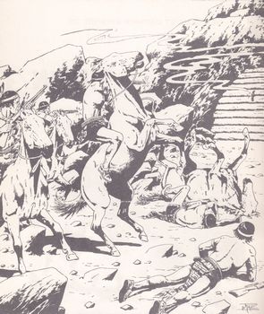 remarques: | épisodes parus dans le Journal de Tintin en 1948, resp. 1950 1) Teddy Bill, défenseur des frontières, 2ème partie (1948) Teddy Bill et ses deux compagnons Tony et Ramon ont fort à faire pour faire règner l'ordre sur les frontières contre les "bad boys", malgré tout Teddy Bill réussit à marier la belle Olivia, rivalité entre les deux compagnies de chemin de fer: la "new west railroad" et la "west traffic", combat avec le chef indien Red Eagle, mais finalement la paix sera à nouveau conclue >> p. 19 une belle prise de catch n.b. dans cet épisode, ce ne sont pas les chinois qui travaillent sur les chantiers du chemin de fer mais des noirs 2) le poignard d'or (1950) 2ème partie épisode paru en album, commentaires voir >> album Yan Keradec par Gordinne >> le graphisme de Le Rallic est toujours bon mais la réédition de cet album a été en partie mal faite, le graphisme est souvent très médiocre tandis que le scenario reste toujours assez intéressant sans apporter de changement notable |