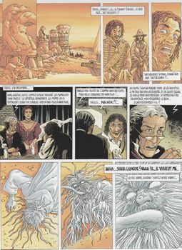 remarques: | volume 8 Nahik, conflits familiaux "tu te montreras charitable envers les plus faibles que toi", dessinateur: Rollin 1813, sous Napoleon, c'est cet album qui aurait été le point de départ de la série, volume unique dans un premier temps (one shot), il allait enfanter les autres albums Nahik fut alors le dénominateur commun de la saga et le nom du livre édité avec le manuscrit et les aquarelles NAHIK = déformation de "non Hector" (non hec) 1813, bataille de Leipzig, le général Alexandre Fleury est gravement blessé Paris décembre 1813, Hector, écrivain et frère d'Eugène Nadal accueille sa soeur Ninon, son fils Benjamin et son mari Alexandre Fleury, devenu un mutilé de guerre, Hector héberge déjà son frère Eugène devenu lui un aliéné mental depuis 10 ans et qui répète toujours le mot Na-hik, la maison d'Hector contient aussi de nombreux objets d'art égyptiens y compris le manuscrit et les aquarelles Hector est devenu un écrivain célèbre et il rédige actuellement un nouveau roman: le papyrus de Kôm-Ombo alors que Eugène est pris continuellement d'affreux cauchemars lors d'une assemblé d'anciens combattants, Ninon apprend le nom du docteur Vauvert qui a déjà guéri de nombreux aliénés mentaux, Ninon critique Hector de ne pas avoir tout entrepris pour guérir Eugène, Hector conduit alors sa soeur à l'hôpital Saint-Jude où sont soignés les aliénés mentaux et prouve à sa soeur qu'Eugène est beaucoup mieux soigné par lui que par les docteurs de Saint-Jude >> p. 21 la visite à Saint-Jude Ninon fait venir Vauvert, l'expérience avec Eugène tourne mal et Hector chasse le dr Vauvert, Ninon se réfugie chez sa soeur Hortense et part enquêter auprès d'une ancienne servante d'Hector, Annaïg qui pourrait faire référence à Na-hik prononcé par Eugène; en l'absence d'Hector, elle fait revenir Vauvert, celui-ci pratique sur Eugène la méthode de somnambulisme artificiel pour provoquer un choc psychique sur Eugène, c'est un genre d'hypnotisme où il fait revenir Eugène dans des évènements du passé, on détermine alors chez Eugène un monstre psychique qui le persécute, ce serait l'origine du mot Na-hik >> p. 33 la rencontre de Ninon avec Annaïg dans son épicerie mais celle-ci n'a rien à dire à Ninon en enquêtant plus profondément, Ninon découvre dans le bureau d'Hector de nombreux ouvrages sur la psychose et l'hypnose alors que celui-ci traite les adeptes de cette méthode de charlatans, à la faveur d'une nouvelle crise d'Eugène, Ninon commence à découvrir la vérité concernant Eugène le monstre, c'est son frère Hector qui hypnotise et manipule Eugène, Hector rédige ses romans sur la base des visions et expériences vécus par Eugène dans ses cauchemars, en fait Hector accentue la folie d'Eugène pour s'approprier les affabulations de celui-ci afin d'écrire ses romans Ninon met aussi la main sur l'omoplate (en fait une reconstitution par Hector de la vraie omoplate d'après les visions d'Eugène) et Ninon comprend maintenant la signification de Na-hik, c'est une supplique que Eugène adressait à son monstre et que Hector entretenait grâce au somnambulisme artificiel >> p. 50 l'explication sur l'omoplate fabriquée selon une aquarelle dessinée par Denouettes Hector démasqué et menacé de dénonciation par Ninon doit céder le manuscrit et les aquarelles à Ninon, renoncer à publier son nouveau roman sous son nom, roman qui sera dédié à Eugène dont Ninon s'occupera dès maintenant >> p. 55 les éditions du Sphinx mais malade et prête à mourir, Ninon confie Eugène au dr Vauvert ainsi qu'Alexandre et Benjamin à Hortense à qui elle remet le manuscrit et les aquarelles pour faire éditer le roman sous le titre Nahik avec Alan D. (= Danal) comme auteur si l'argent leur fait défaut >> un superbe thriller de Giroud avec un graphisme non négligeable de Rollin et une magnifique couverture d'album |