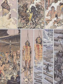 remarques: | 1859 St-Louis/Missouri où se déroule une affaire criminelle mêlée de racisme et de politique et où Jonathan Cartland se trouve indirectement concerné voyage sur le Missouri avec le bateau "Iowa" qui sera incendié et un peau-rouge Mandan, Wah-Kee, enfermé dans une cabine par le capitaine y périra, celui-ci ayant oublié d'ouvrir la cabine Cartland poursuit son enquête qui le conduira à l'instigatrice du crime et du complot politique, l'espionne Silver Blue, de plus, Cartland sera poursuivi par le fantôme de Wah-Kee qui se révèlera être un sorcier Mandan, frère jumeau de Wah-Kee, après-coup Cartland sera initié à la sun dance et portera le nom de Wa-Pa-She (le sacrifié) >> p. 10 la navigation sur le Missouri >> p. 28 la sun dance (danse du soleil) >> p. 47 ce n'est pas l'habitude de Jonathan de tirer dans le dos de son adversaire >> un scenario quelque un peu complexe, mais restant intéressant t toujours un superbe graphisme et coloriage décrivant en partie à nouveau les moeurs des peaux-rouges avec une couverture d'album joliment exécutée |