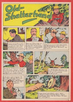 remarques: | sous le titre Karl May, Old Shatterland, détective les débuts de Meyer qui se rend en Amérique et qui deviendra Old Shatterhand, chasse au trésor et rencontre avec Winnetou >> p. 12/13 le duel au tomahawk mais avant de s'emparer des pépites d'or, Old Shatterhand aura encore affaire avec une bande de mauvais garçons >> question médiocrité, on ne peut guère faire mieux, des illustrations misérables, un texte sous les images qui ne vaut guère mieux et à peine lisible Information cet album aurait eu comme dessinateur et scénariste Hugh Conelly sur adaptation de Karl May aux éditions Matla ou Anonimo (italien?) en 1948, noté N° 344/47 au verso en tout petit en bas à droite |