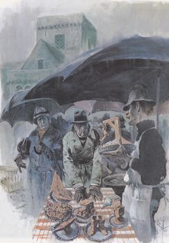 remarques: | prologue: l'exécution de Sal Brewer par pendaison et la malédiction adressée à son executeur Molwine le palace-prison à la mode Angkor où le jeune Edmund Bell vient passer ses vacances et où le propriétaire Molwine est harcelé par la malédiction de Sal Brewer >> p. 24 la malédiction de Sal Brewer représentée par une corde affublée de la tête de sa victime Edmund Bell, fils d'un superintendant de Scotland Yard, enquête et constate que Sal appartenait à la secte de Kali s'adonnant à la magie noire et qui utilise la corde des étrangleurs thugs, Edmund Bell réussira à démasquer l'instigateur des malédictions, un détenu John Pettycoat alias John Brewer, père de Sal, qui bénéficiait d'une semi-liberté dans le palais-prison et qui organisait sa vengeance par magie noire, il trouvera la mort dans les marais en essayant de s'enfuir >>> un récit tiré du roman de John Flanders (alias Jean Ray), mais qui ne rend pas vraiment l'atmosphère du roman malgré un assez bon graphisme |
