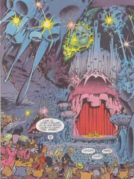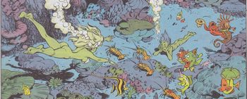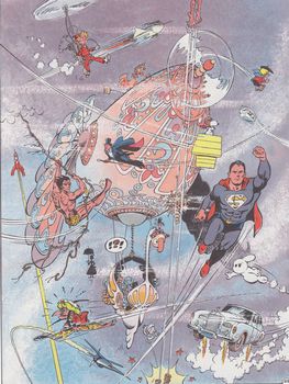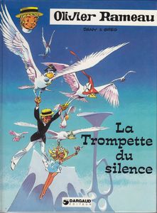 remarques: | à Hallucinaville, le temps s'arrête et les habitants sont statufiés quand retentit le son de la trompette du silence >> p. 4 natation érotique mais pudique >> p. 22 la bataille au gâteau à la crème pour faire garder au peuple sa bonne humeur la trompette est soufflée par Cocon-le-vilain, le géant de la montagne de la Grande Muscade, Olivier et ses amis partent en mission >> p. 14 le départ par les airs à bord de l'ébouriffonophore >> p. 24 rencontre avec les super-héros de la bande dessinée et leur critique par Olivier Rameau arrivés aux montagnes de la Grande-Muscade, nos amis se rendent compte qu'il ne s'agit pas d'un géant mais d'un concert dirigé par le maître-trompettiste Cocon-le-vilain qui n'est en fait pas un géant, mais un nabot jouant sur une trompette miniature dont le son est amplifié par les cavernes de la montagne, après explication tout redeviendra en ordre >> à nouveau un album à l'eau de rose, plein de gaîté et de fraîcheur mais en fait peu de consistence, toutefois toujours bien dessiné n.b. 12 albums sur Olivier Rameau ont paru de 1970 à 2005 (seuls 4 albums sont collectionnés ici, à titre d'exemplaires représentatifs de la série), les deux meilleurs sont peut'être: le miroir à 3 façes et la trompette du silence, mais en général les albums sont de bonne fracture alors que la critique donne le 12ème et dernier album paru "les disparus du Bayou Plalah" comme un navet (album paru 18 ans après l'avant-dernier = "l'océan sans surface") liste des albums manquants: - tome 3, le château des quatre lunes (1972) - tome 4, la caravelle de n'importe où (1973) (c'est le dernier album broché, édité au titre Jeune Europe, les prochains seront en version cartonnée) - tome 5, le grand voyage en Absurdie (1974) - tome 6, l'oiseau de Par-ci, par-là (1975) - tome 9, le canon de la bonne humeur (1983) - tome 10, le rêve aux sept portes (1985) - tome 11, l'océan sans surface (1987) - tome 12, les disparus du Bayou Plalah (2005) tous ces albums ont été écrits et dessinés par le duo Dany/Greg |