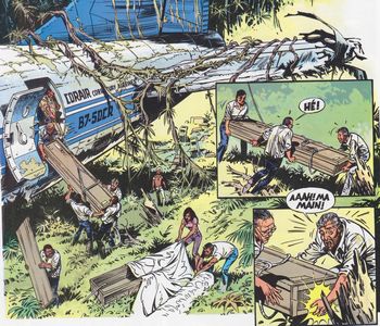 remarques: | réédition 1993 avec nouvelle couverture et 6 pages additionnelles en préface d'une histoire de flash-back signée Largo Winch! en 1974, un avion s'abat dans le Mato Grosso, des 7 membres de l'équipage et des 27 passagers, seuls 2 membres de l'équipage et 14 passagers survivront, après 12 jours, il ne reste plus que les 2 membres de l'équipage et 8 passagers un des passagers, un jeune garçon, Draillac, fils d'un gros industriel français (que l'on rencontrera adulte dans une aventure de Largo Winch), sur le modèle d'un roman de Jules Verne, proposera de construire une montgolfière avec les marchandises, surtout de la toile, trouvées dans la cargaison >> p. 25 le plan pour la construction du ballon au 15ème jour, la construction du ballon est terminée, mais son envol nécessitera le sacrifice d'un survivant 8 survivants dont 1 hôtesse arriveront à bon port après 2 jours de vol >> p. 45 l'envol du ballon >> un album assez intéressant de par un scénario captivant de Van Hamme décrivant notamment les relations humaines entre les survivants, une histoire assez originale mettant les survivants au rang de héros avec un graphisme bien exécuté par Dany, quelque peu semblable au graphisme exécuté pour la série Bernard Prince annexes - couverture de la réédition et celle de l'album original - 4ème plat et page de garde - deux extraits de l'album n.b. à la fin de l'album, flash-back de Largo Winch et prélude au prochain album qui paraîtra 20 ans plus tard (1997) |