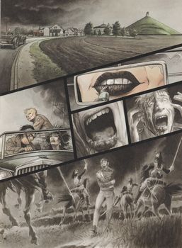remarques: | troisième et dernier volet de la trilogie morbide, tout est en place pour le dernier acte à tout hasard, on ajoute au volume quelques planches sur la bataille de Waterloo (tout aussi morbides) avec la visite du site où Charles retrouve ses amis dont sa chère Alba explications de Charles: la vieille concierge avait étudié l'occultisme pour expérimenter la théorie de la décorporation, c'est à dire quitter un corps pour voyager par l'esprit (un ectoplasme), ses locataires devinrent alors des cobayes, par la suite, elle voulu expérimenter sur Charles ses travaux et exécuter sur lui une métempsycose (= transmigration des âmes d'un corps à un autre) ainsi que se faire passer pour Charles auprès d'Alba Charles se réveillera sous la forme d'une mouche, puis en état de spiritisme (l'état morbide?) mais son esprit réagira en venant au secours d'Alba t il réussira à éliminer le mal qui trouvera son apothéose dans l'incendie flamboyant de l'immeuble où l'expérience avait commencé, mais le mal est-il vraiment éliminé? et que fait Waterloo dans ce récit? >> en fin d'album on apprend que toute l'histoire est en fait l'histoire du scénario de la trilogie comme imaginé par le scénariste, au fond une histoire dans l'histoire, mais si le développement du récit dans le premier volume avait assez bien commençé, les deux prochains volumes sont quelque peu décevants avec un scenario pour ainsi dire morbidement inextricable, le graphisme restant le seul vrai point intéressant bien que quelque peu proche de la folie |