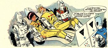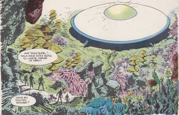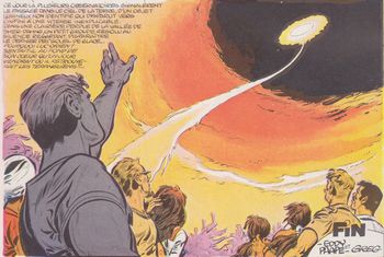 remarques: | album cartonné, 46 pages suite du tome 1 "les dragons de feu" >> p. 38 ce sont les téranghiens, mais >> p. 49 on écrira les téranguiens et ce sera cette orthographe qui subsistera de nombreux dangers attendent nos amis dans la vallée des trois soleils dont des plantes aux feuilles métalliques et finalement la rencontre avec des extra-terrestres échoués sur la terre avec leur soucoupe volante surnommée soleil de glaçe par les indigènes l'histoire des extra-terrestres provenant de la planète Terango, le prof. Kala réussit alors une opération de réanimation, mais il est doublé par le dr. Argos qui, lui, réanime de son côté des hommes primitifs qui avaient été capturés par les teranghiens dans le passé pour les étudier fin de chapitre, les teranguiens regagnent leur planète tandis que le dr. Argos disparaît dans la jungle avec ses hommes primitifs >> un album dans la lignée du précédent, bon graphisme et scenario respectable qui laisse une certaine ouverture pour de prochains récits sur le cycle de Terango annexes - couverture de l'album - extraits de page - portrait du dr. Argos Information - Luc Orient est une série de bande dessinée de science-fiction, nommée d'après son personnage principal, créée par Greg (scénario) et Eddy Paape (dessin), publiée du 19.1.1967 au 12.6.1984 dans Journal de Tintin et éditée en album de 1969 à 1994 aux éditions Lombard et Dargaud, avant la publication d'une intégrale incomplète en trois volumes chez Pictoris Studio en 1998 et 1999, puis d'une intégrale complète en cinq volumes aux éditions du Lombard en 2008, cette série est maintenant terminée - histoire de la série constatant que le genre de la science-fiction n'est pas représenté dans le Journal de Tintin, son rédacteur en chef Greg demande à Eddy Paape, vieux routier de la bande dessinée, de collaborer avec lui sur une série de science-fiction - c'est ainsi que naît, le 17 janvier 1967, Luc Orient, série narrant les aventures d'un physicien à la carrure d'athlète, de son patron, le prof. Hugo Kala et de son assistante, Lora - le premier cycle de la série (tomes 1-5), influencé par Flash Gordon, transporte les héros sur la planète Terango qu'ils vont libérer de son dictateur, Sectan, Luc Orient et ses amis seront ensuite confrontés dans un deuxième cycle (tomes 6-11) sur Terre à des menaces tout aussi fantastiques (manipulations génétiques, peuples inconnus, folies collectives, etc), le troisième cycle principal (tomes 12-15) tourne autour de l'exode du peuple des Dartz qui cherche à s'établir sur Terango - inspiré aussi par Brick Bradford et par des articles scientifiques qu'il extrapolait, Greg donnera à Paape, un ami de longue date, des scénarios sur mesure grâce auxquels celui-ci pourra innover avec des cadrages et une narration de plus en plus inventifs - le départ de Greg pour la France, puis pour les États-Unis (1980), sonnera la fin de la série, Greg demanda à Gérard Jourd'hui de le remplacer, mais c'est Eddy Paape qui finira tout seul et signera l'album Roubak, ultime espoir - le retour de Greg en 1984 permet d'éditer un 16ème album, Caragal, dans lequel Luc Orient doit affronter son meilleur ami Kala qui est dénaturé par l'auteur; il semble vouloir en finir avec une œuvre qu'il juge trop marquée par son temps, une reprise de la série en 1994 ne rencontrera pas le succès attendu, poussant Greg à abandonner la série Luc Orient, de plus, un désaccord sur la trame du scénario du dernier album, jugée peu cohérente, entraîne l'interruption du travail d'Eddy Paape, cette interruption deviendra définitive avec le décès du scénariste en 1999, cette dernière histoire, intitulée le Mur demeurera donc inachevée (6 planches dessinées, 11 scénarisées) et sera publiée pour la première fois en 2008 dans le dernier volume de l'intégrale publiée par Le Lombard - les albums sont publiés par les éditions du Lombard, mais également par Dargaud la même année, avec la mention "une histoire du journal Tintin" n.b. dernier album collectionné sur ce site: tome 18, rendez-vous à 20 heures en enfer (1994) |