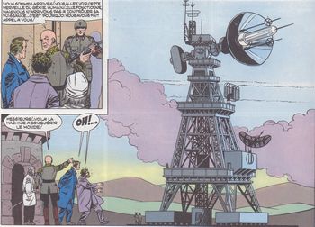 remarques: | album cartonné, 45 pages lors du débarquement, Valhardi ne réussit pas à délivrer le prof. Stagmus, mais il parviendra à s'infiltrer dans l'escorte poldève qui conduit le prof au centre de recherche, malheureusement Valhardi est repéré et pourchassé >> p. 10/11 une poursuite spectaculaire en moto sur des routes verglacées et "huilées" coincé dans une cabane donnant à pic sur un précipice, Valhardi réussira à s'échapper en confectionnant un genre de parachute, puis à rejoindre des partisans poldèves qui vont l'aider à délivrer le professeur en enlevant deux savants suisses arrivant en Poldévie pour assister le prof. Stagmus dans ses travaux >> p. 29 les braves savants suisse pour aider à la construction du "gammatron": le professeur Oestroblohm et son assistant Valhardi et Arsène prendront la place des savants suisses pour pénétrer dans la forteresse, explications scientifiques sur le rayon super-gamma et présentation >> p. 36 la fameuse machine à conquérir le monde Valhardi parviendra à détruire la machine et à s'enfuir, mais le prof Stagmus meurt dans l'opération et Valhardi préférera détruire les plans du rayon super-gamma afin de préserver l'humanité d'une catastrophe meurtrière, la morale est sauve >> une action assez bien soutenue et parfois un très beau graphisme (dont la poursuite en moto), le scénario ressemblant quelque peu à l'album "l'affaire Tournesol" n.b. les tomes 2 et 3 mentionnent Charlier comme scénariste alors que dans le premier album "le château maudit", seul Eddy Paape figure sur la page de garde annexes - couverture de l'album - la super machine gammatron - couverture de l'un des derniers albums |