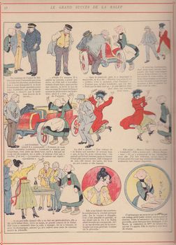 remarques: | Madame de Grandair, maîtresse de Bécassine, est un peu gênée financièrement par ces temps de guerre 14/18 et Bécassine décide d'aller chercher du travail dans la capitale elle trouve d'abord du travail dans les tramways parisiens comme contrôleuse où elle fait la connaissance de sa collègue Virgine Patate et du conducteur le père Lemboité, spécialiste de l'électro et du mécano >> p. 19 c'est du fumier, comme ça sent bon le fumier! un peu plus tard, Bécassine est mobilisée au RALEPEUPPST = page 37 réserve d'automobiles légèrement endommagées pouvant être utilisées pour petit service temporaire >> p. 37 publicité pour la culture physique >> p. 41 l'histoire de Agenor Ténus, chef de la RALEP et de son épouse la colonelle Carmencita Gonzales >> p. 42 le classement des archives avec le commissaire-priseur Dumarteau, Bécassine s'occupe aussi de la vente aux enchères des pièces détachées de vieilles voitures selon la circulaire no 3721 finalement Bécassine se fait remarquer par son esprit d'initiative et par ses idées originales et elle sera engagée comme agent secret, prochaine mission dans le prochain album: "Bécassine chez les Turcs" >> des aventures loufoques super-naïves sur un monde à jamais perdu (à noter: les relations avec les gens haut-placés et les subalternes!) un texte sous les images sans prétention pour gentilles petites filles sages et un graphisme peu recherché genre images d'Epinal, mais ce sont des albums mythiques du début de la bande dessinée, toutefois si les premières aventures de Bécassine étaient encore assez amusantes et charmantes de par leur originalité, ce tome 5 n'a plus guère de saveur, il n'y aura que les tomes 1 et 4 collectionnés ici à titre d'exemplaires représentatifs de la série n.b. cet album est noté ABE bien que les deux plats de couverture soient très propres et l'intérieur complet sans déchirures ni salissures mais avec des pages de garde désolidarisées (recollées) d'où la valeur limitée ici à Euro 30.- alors que la côte en BE approche facilement Euros 150-200.- |