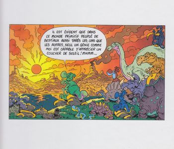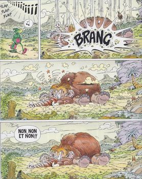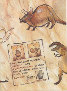 remarques: | le premier album de la série, des sketches comiques apeupréhistoriques, avec Nabuchodinosaure, le jeune dinosaure et ses péripéties loufoques dans un monde changeant et périlleux dont les meilleures: galanterie, le météosaure, concurrence déloyale, conquérants de l'extrême, rodeo, fait d'hiver >> un bon graphisme et un scénario original apeupréhistorique, apeupréphilosophique et apeupréhumoristique avec une jolie couverture d'album, il y aura encore plusieurs albums de cette série (14 en tout de 1993 à 2012) et puis encore un 2ème cycle: les nouvelles aventures apeupréshistoriques (avec trois volumes en 2018/2019), mais seul le premier volume est collectionné ici comme exemplaire représentatif |